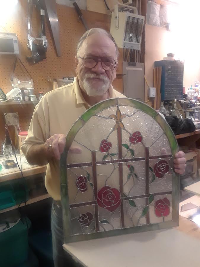 My fascination with glass started in about 1978 when I found a 200-year-old stained glass window in the crawl space of an old church I was doing electrical work on. The custodian gave it to me. A few years later I took stained glass classes to learn how to fix the window. That window has hung in my home for many years now.